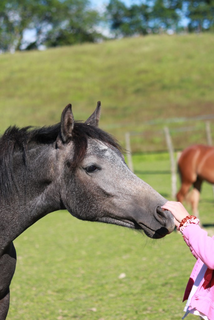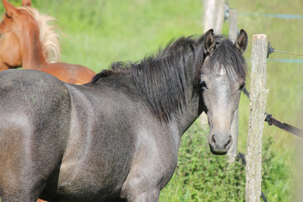 Née le 11 juin 2020, Kalypso est la fille d’Em Meline (haflinger) et de Massoud du Laris (pur sang arabe). Inscrite au stud book du Demi Sang Arabe.