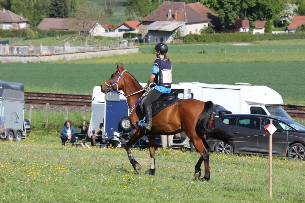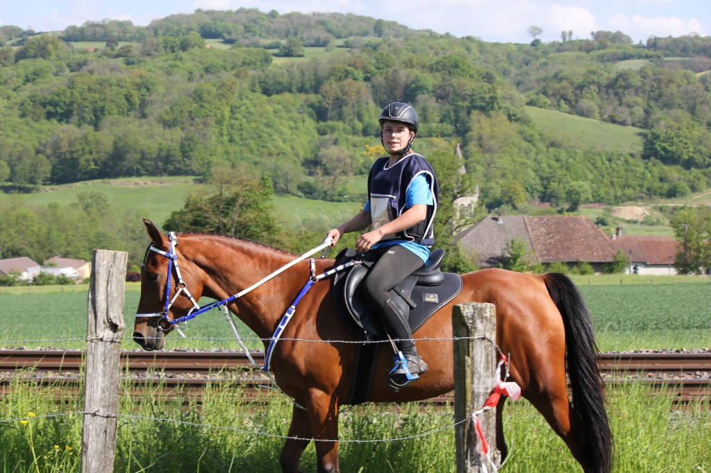 Invitée par Elodie et Corentin, ils feront tous les 3 équipe en club 1 avec leur monture. D’abord un chouette POR le matin sans difficulté gérée entièrement par la plus expérimentée de l’équipe : Elodie ! Puis , une parfaite maîtrise des allures avec la note 50/50 et enfin un PTV pas facile car en dénivelé et en dévers où Albane et Vicktoria évolueront au trot afin de ne pas glisser. L’équipe finira 13ème/15. Nous retiendrons encore fois l’excellent comportement de Vicktoria qui permet à Albane , 13 ans, cavalière depuis 2.5 ans (qui ,rappelons le , monte Vicktoria depuis 18 mois seulement) de passer de bons moments !